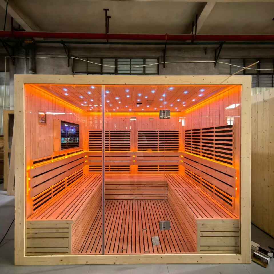 Επενδύστε σε μια αίθουσα σάουνας που επαναπροσδιορίζει την ομαδική ευεξία. Το δωμάτιο σάουνας 5-10 ατόμων με σάουνα υπερ-υπέρυθρης ακτινοβολίας με τηλεόραση LCD είναι κάτι περισσότερο από ένα προϊόν—είναι ένας κόμβος χαλάρωσης, υγείας και συντροφικότητας. Επικοινωνήστε μαζί μας σήμερα για να εξερευνήσετε τις επιλογές προσαρμογής και να φέρετε αυτήν την premium λύση ευεξίας στον χώρο σας.