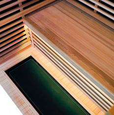 Το ξεχωριστό χαρακτηριστικό της σάουνας είναι το σύστημα διπλής θέρμανσης. Τα θερμαντικά στοιχεία υπέρυθρης ακτινοβολίας επιτρέπουν τη βαθιά διείσδυση, θερμαίνοντας το σώμα από μέσα προς τα έξω για να προωθήσει την κυκλοφορία του αίματος και την αποτοξίνωση. Το βοηθητικό σύστημα θέρμανσης εξασφαλίζει γρήγορη άνοδο της θερμοκρασίας, επιτρέποντας στη σάουνα να φτάσει την επιθυμητή θερμοκρασία σε σύντομο χρονικό διάστημα. Αυτός ο συνδυασμός όχι μόνο ενισχύει την απόδοση θέρμανσης αλλά διατηρεί επίσης ομοιόμορφη κατανομή της θερμοκρασίας, εξαλείφοντας τα κρύα σημεία.