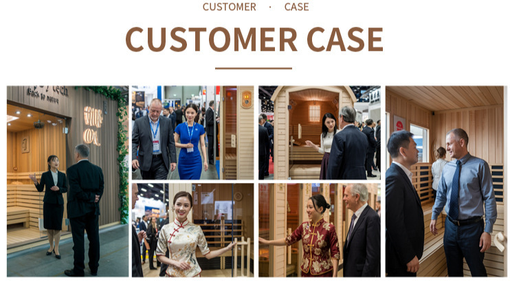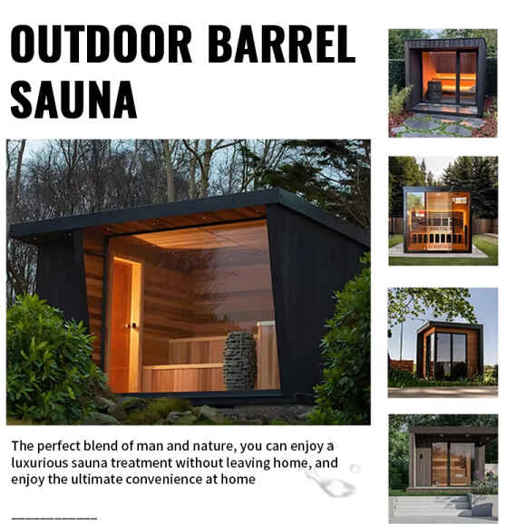 Προσαρμογή ξύλου: Επιλέγει υψηλής ποιότητας καναδικό εισαγόμενο ξύλο ειδικά για εξωτερικούς χώρους - πεύκο (υψηλή σκληρότητα, οικονομικά αποδοτικό, αντιδιαβρωτικό), κώνειο (υψηλής πυκνότητας, ανθεκτικό στην υγρασία και ανθεκτικό στην παραμόρφωση) και δυτικό κόκκινο κέδρο (φυσικά αντιδιαβρωτικό, με αντοχή σε φυσικό άρωμα ξύλου, ανταποκρίνεται στις απαιτήσεις του φυσικού ξύλου για το άρωμα, το έντονο άρωμα του περιβάλλοντος),Εξωτερική γυάλινη πόρτα υπαίθριο ατμόλουτρο.