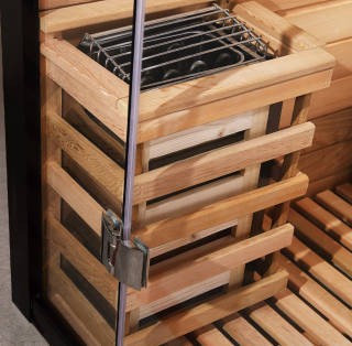 - Εσωτερικό από φυσικό ξύλο κέδρου: Το εσωτερικό είναι επενδεδυμένο με εξαιρετικής ποιότητας ξύλο κέδρου, το οποίο απελευθερώνει ένα λεπτό, ηρεμιστικό άρωμα όταν θερμαίνεται. Ο κέδρος μπορεί επίσης να υπερηφανεύεται για την εξαιρετική συγκράτηση της θερμότητας, διατηρώντας τον χώρο ζεστό αποτελεσματικά και αντιστέκεται στην υγρασία για να αποφευχθεί η παραμόρφωση.