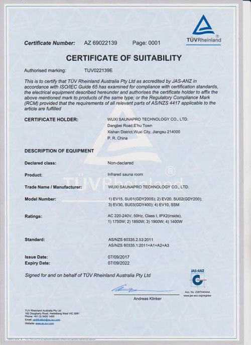 - Πιστοποιημένα εξαρτήματα: Όλα τα εξαρτήματα (θερμαντήρας, καλωδίωση, φως) πληρούν τα πρότυπα ασφαλείας, ώστε να μπορείτε να χαλαρώνετε χωρίς να ανησυχείτε για κινδύνους.